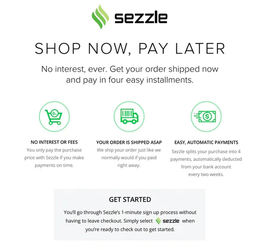 *Sezzle provides you with a payment option where you can buy now, and pay later.