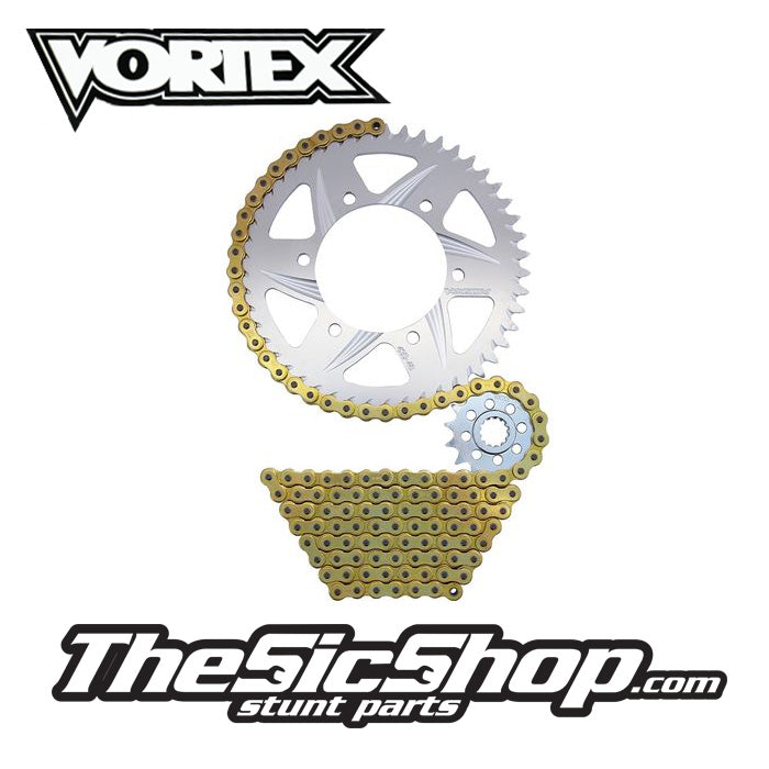 420 Complete Chain and Sprocket Kit for Honda Grom Drive Kits include a lightweight 6061-T6 alloy rear sprocket, drilled and lightened case-hardened steel front sprocket, and an EK chain