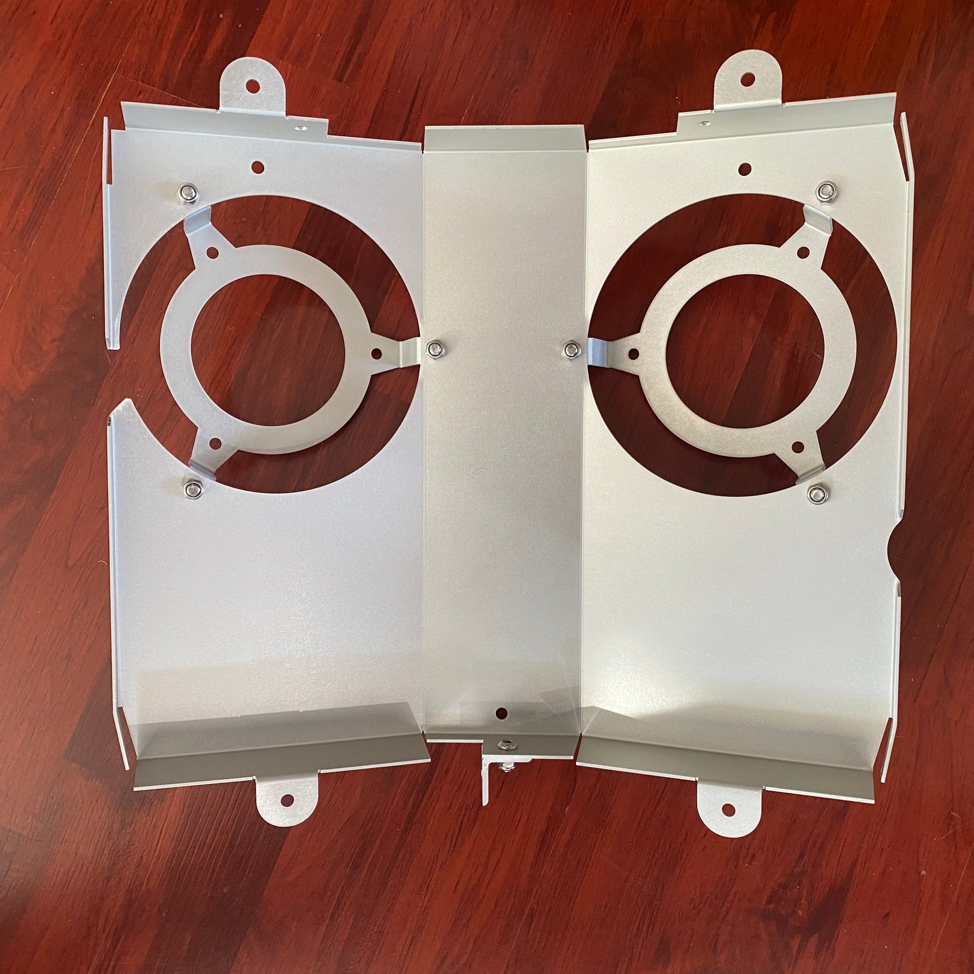 This is an exclusive Sic Shop designed Radiator Support and Fan Shroud Kit. It holds (2)Panasonic High CFM Fans and provides strength and support to your radiator and mounting points. It is aluminum construction to make it lightweight (1.5 lbs) and to help dissipate heat. This is a direct bolt-on, plug and play system.