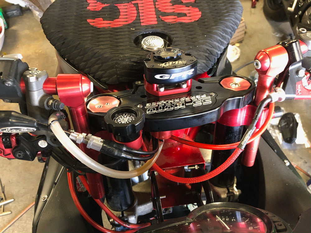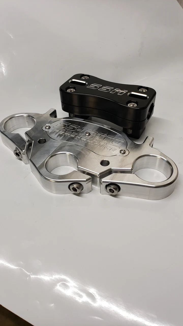 OK riders we've solved all you upper triple tree needs. The SS-MOTO STUNT Triples feature a one of a kind reservoir concealment that allows you to store your mini 15cc reservoirs in a safe area under the triple, while still being able to remove them to do your regular brake maintenance whether that be bleeding, adding or changing fluid, without having to remove the feed lines to your masters. This design works with Clipons and with Dirtbar setups.