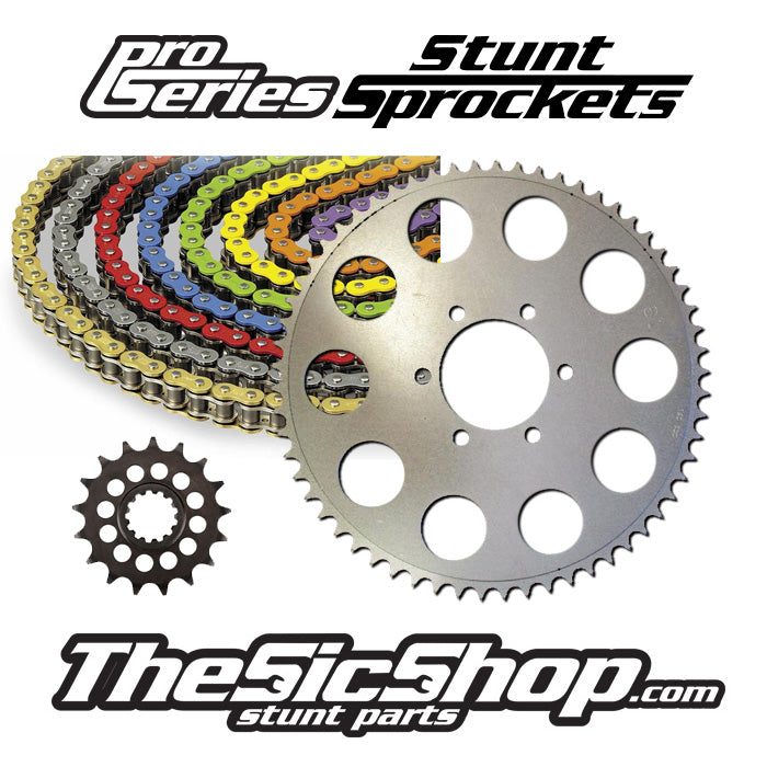 Complete Chain and Sprocket Kit All ProSeries Sprockets are Made in the USA from the harder grade 7075-T6 certified aero space industry aluminum for long life and light weight. Kits include a lightweight 7075-T6 alloy rear sprocket, drilled and lightened case-hardened steel front sprocket, and an EK X-ring chain.