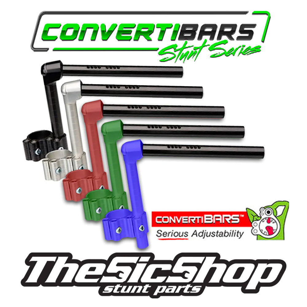 Stunt Series Infinitely Adjustable Handlebars with an improved thicker design on the top of the riser for increased strength for stunt riding. The original Convertibars were great, these are even better!