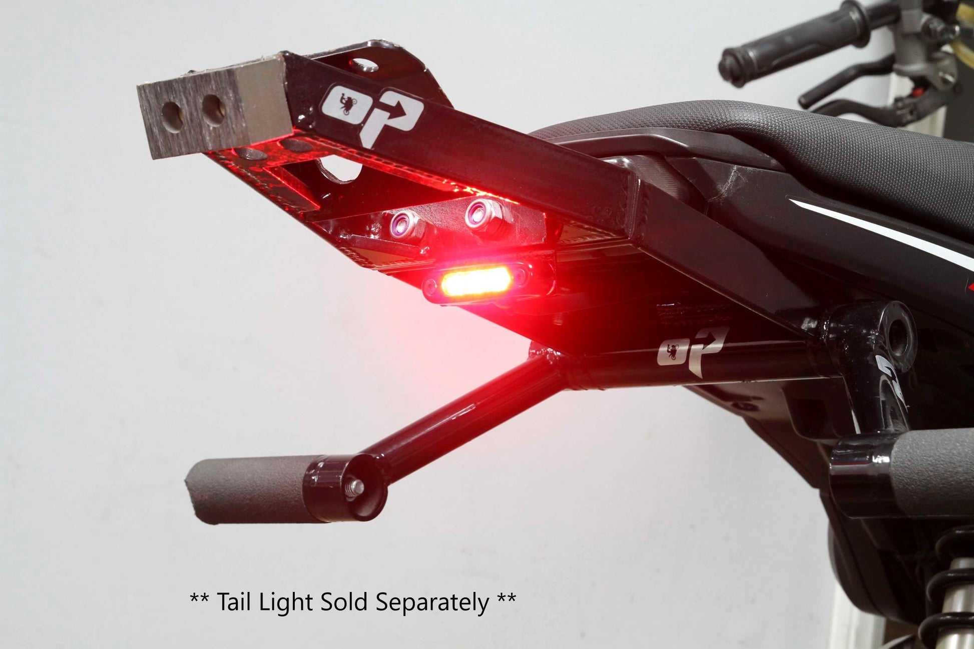 The ultimate 12 o clock scrape bar. The On Point Performance Triangle Bar with Titanium includes a Base Plate which reinforces the sub frame allowing you to securely mount a scrape bar without damaging your bike. It comes with a replaceable 1.25″ x 1″ Titanium scrape plate for extra bright sparks. We have designed our Triangle 12 Bar so that the angle at which it is cut, matches that of the tail and follows the sharp lines of the tail fairing, allowing it to look as good as it performs