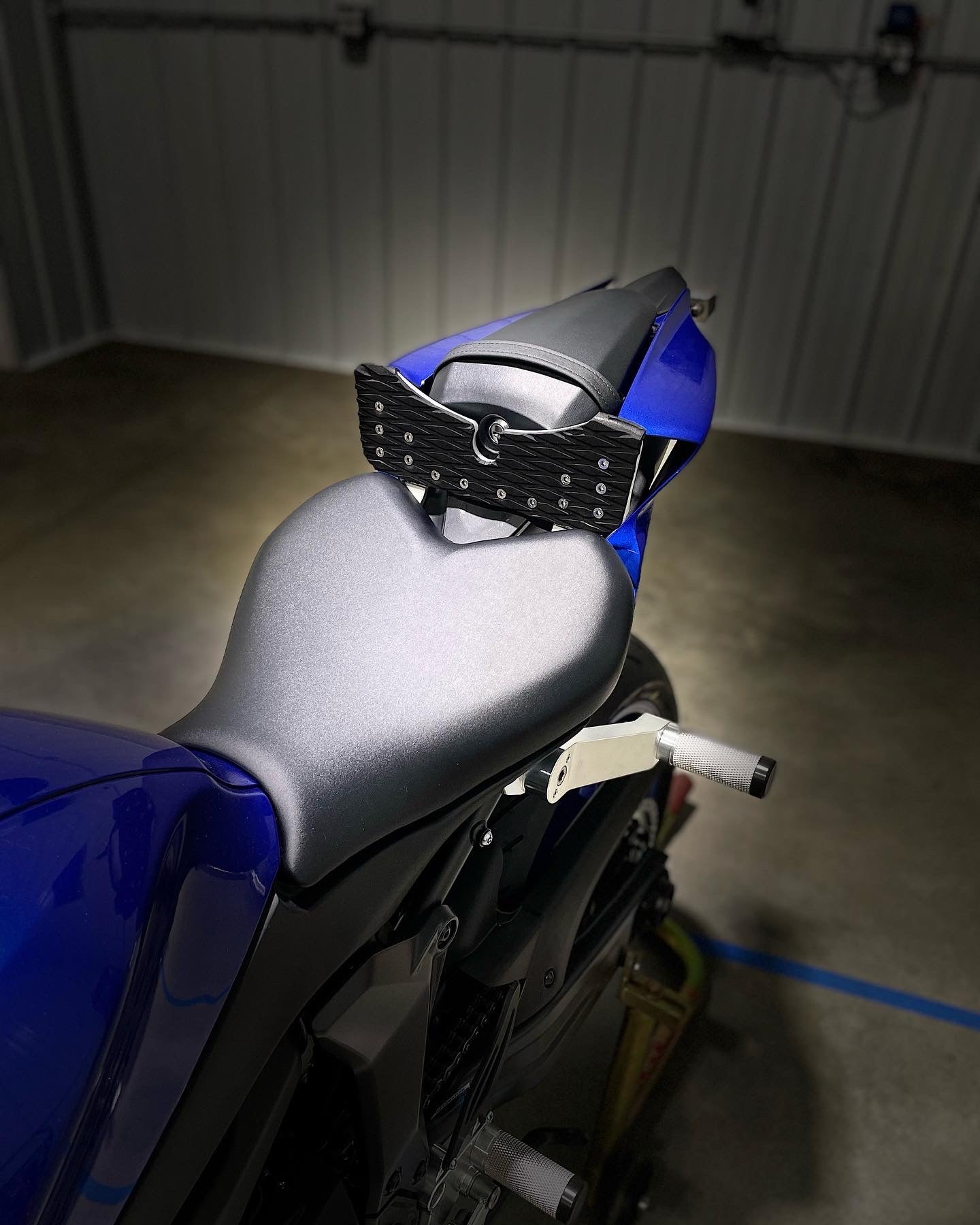 This will help prevent breaking the tail fairings during seat stander wheelies or when jumping around the bike. Allows for removal of the rear seat. Bolts to factory subframe with no modifications. Includes all required hardware.