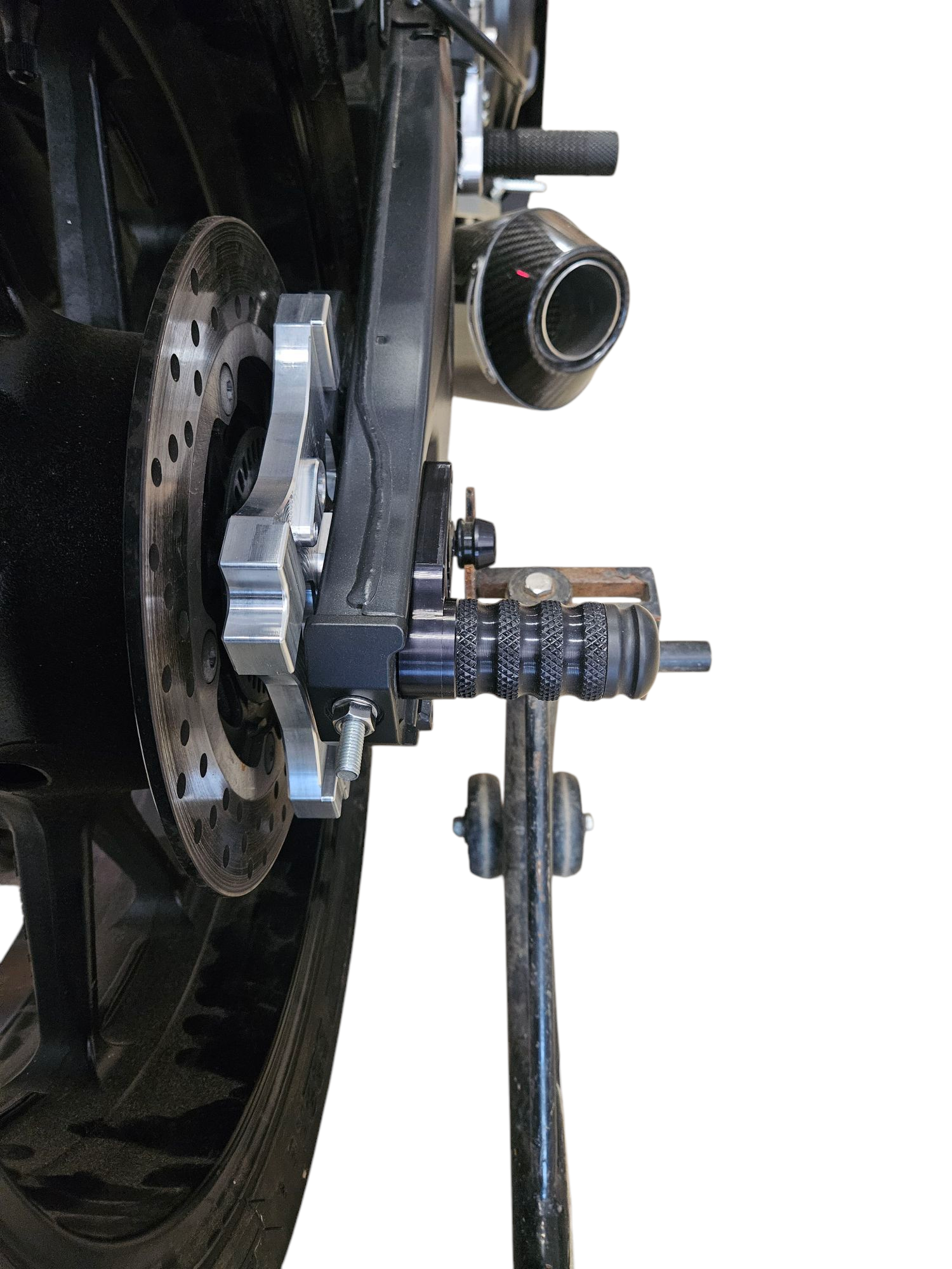 R7 FZ/MT07 REAR AXLE SLIDERS WITH ADJUSTER BLOCKS
