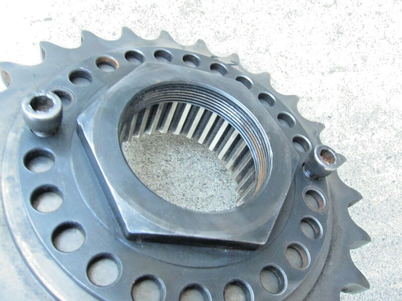 Harley Davidson front sprocket lock nut. Made in USA using aircraft grade steel plate. Ships with two high grade allen head bolts.