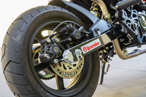 Our Impaktech Honda Grom rear hand brake bracket is designed to work with your stock rotor. It works with any 2-piston caliper. BRACKET ONLY (CALIPER is and add-on option)