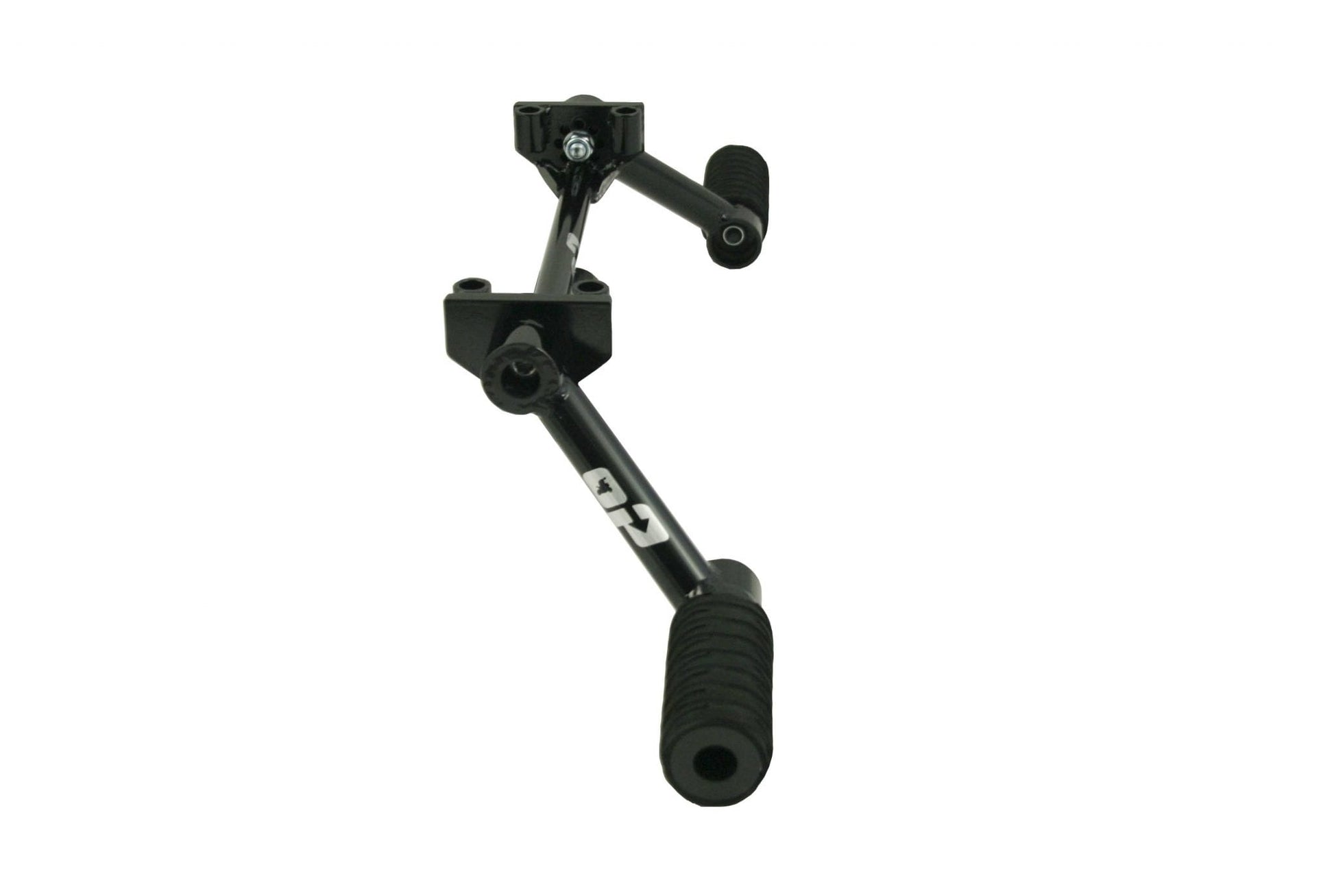 Adjustable Positions: Great for dialing in the perfect stance. The pegs can be rotated from the stock location all the way to up to level with the sub frame, significantly changing the feel/ balance point of the bike during a wheelie